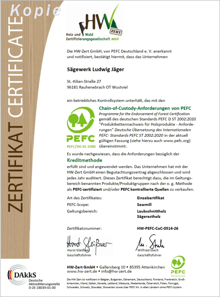Produktkettennachweis für Holzprodukte